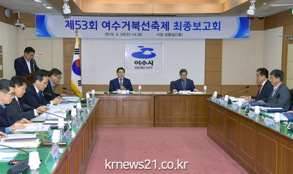 시는 24일 오후 시청 상황실에서 권오봉 시장 주재로 거북선축제 추진상황 최종 보고회를 열고 부서별 행사 준비를 꼼꼼히 살폈다고 밝혔다.
