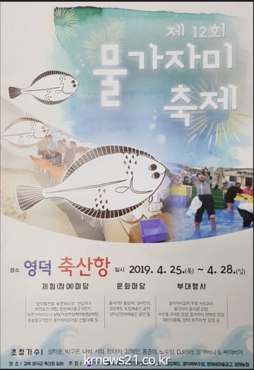 (전북/경북/뉴스21)송태규기자 = 경북 영덕축산항에서 제12회 영덕축산항 물가자미축제가 2019. 4월25일.(목)~28일.(일)까지 축산항일원에서 축제가 진행된다.