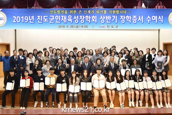 진도군이 최근 진도군청 대회실에서 2019년 진도군인재육성장학회 입학성적장학금을 전달했다.