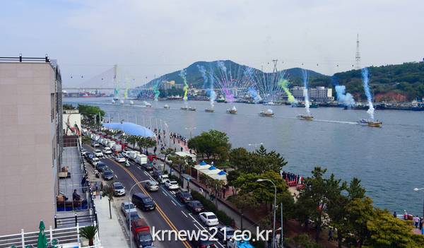 이밖에도 4일 오후에는 거북선대교~이순신광장~돌산대교 앞 해상에서 어선, 해군 3함대 고속정, 해경 함정, 거북선 유람선 등 선박 44척이 전라좌수영 수군 출정과 승리 퍼레이드를 생생하게 재현했다.