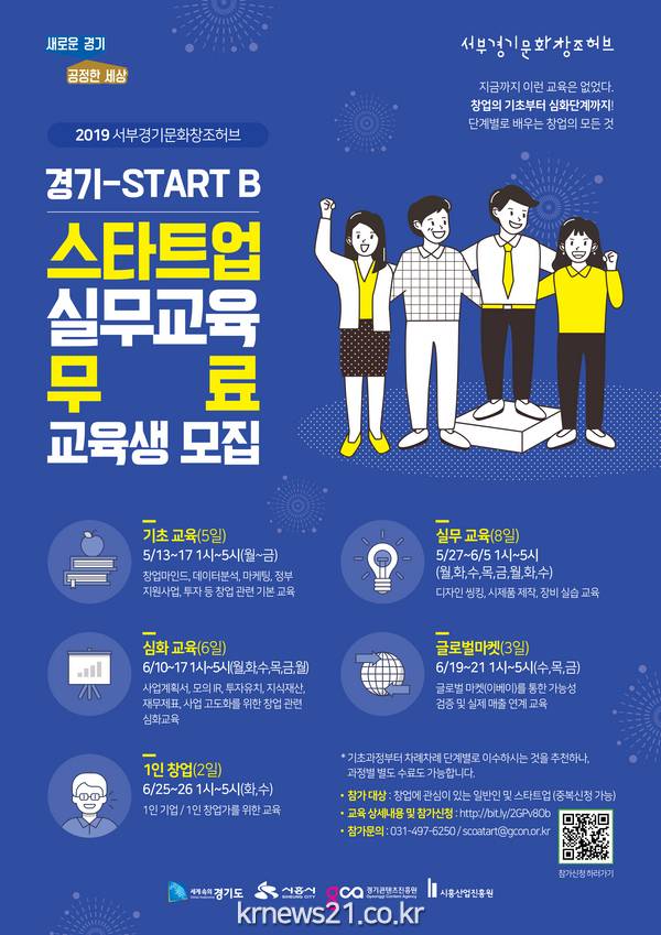 경기도와 경기콘텐츠진흥원(이사장 김경표)은 “2019 스타트업 실무교육”에 참여할 상반기 교육생을 모집한다고 밝혔다.