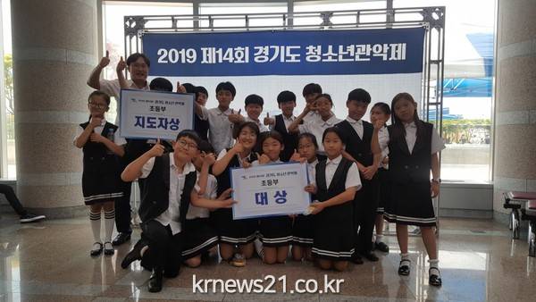 백의초등학교(교장 임재탁)은 6월 15일 의정부 예술의전당에서 열린 제14회 경기도 청소년 관악제에서 최고상인 대상을 수상했다.