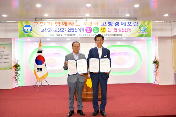 이날 경제포럼에 앞서 고창군과 고창군기업인협의회는 ‘생명존중, 나눔과 기부, 인구늘리기’민관 실천협약을 진행했다.