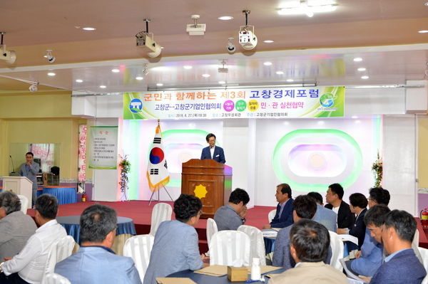 고창군 기업인협의회(회장 김종학)와 고창군이 지난 27일 저녁 군민과 함께하는 제3회 고창경제 포럼을 열었다.