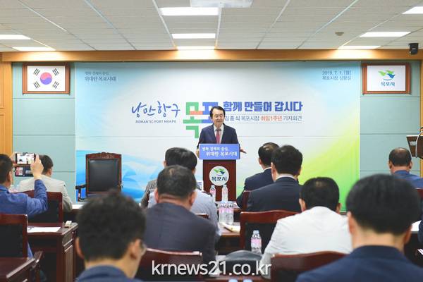 민선7기 취임 1주년을 맞은 김종식 목포시장은 1일 오전 시청에서 기자회견을 갖고, 그동안의 주요성과와 향후 시정운영 방향 등을 설명했다.