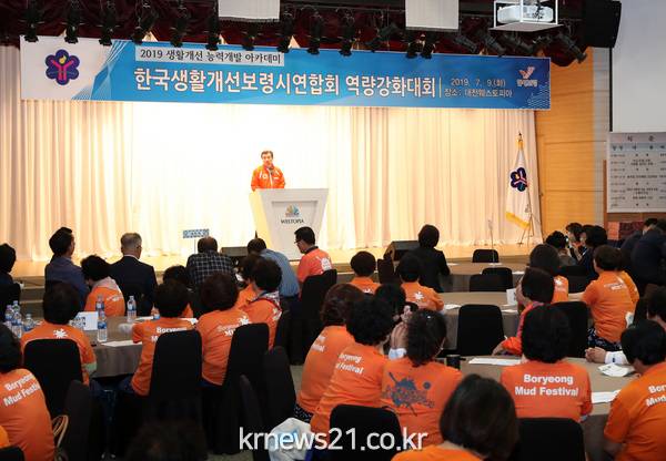 ▲ 역량강화대회 장면보령시는 9일 오전 웨스토피아에서 김동일 시장과 신용숙 한국생활개선 보령시연합회장 등 관계자 150여 명이 참석한 가운데 역량강화대회를 가졌다고 밝혔다.