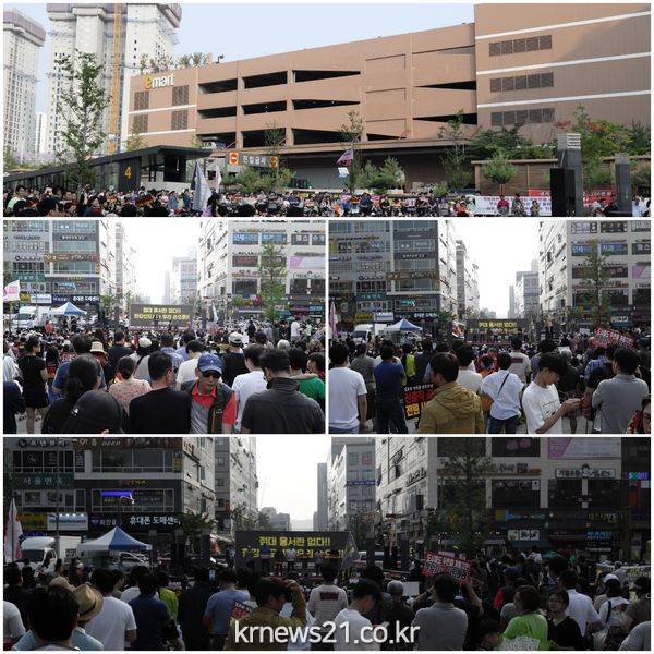 오늘 오후 김포시 구래역 1번 출구 앞 문화의 거리에서 김포시민들은7월 27일에 개통 예정이었던 김포도시철도
