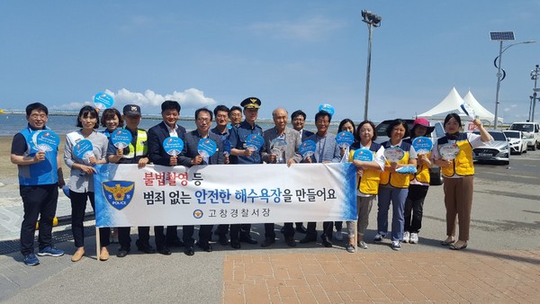 고창경찰서(서장 박정환)는 7. 12.(금) 피서 철을 맞이하여 구시포· 동호해수욕장에서 카메라등이용촬영 범죄 등 범죄예방을 하고 안전한 피서 철 분위기를 만들기 위해 해수욕장 상가번영회원과 (사)패트롤맘고창지회 등 여성단체와 합동으로 『범죄예방 캠페인』을 하였다.