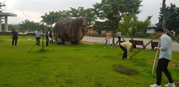 고창군 문화유산관광과 직원 30여명이 지난 29일 죽림리 지석묘군 일원에서 ‘내고장 문화유산 지킴이’ 활동을 진행했다. 직원들은 고인돌 주변의 환경정화와 제초작업 등 방문객들이 편하게 고인돌을 관람할 수 있도록 배려했다.