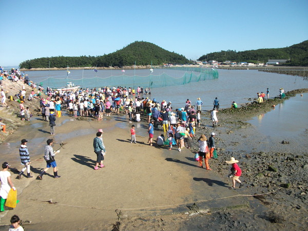 갯벌 위 그물에 빠진 숭어, 농어, 돔 등 고기를 맨손으로 잡는 쾌감을 맛볼 수 있으며 직접 잡은 고기를 현장에서 회로 맛볼 수 있어 관광객들의 큰 호평을 받고 있다.