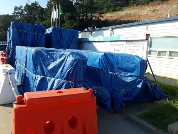 토공구간 법은 우기철 대비 비닐 및 포장 등으로 덮어서 사전 재해에 만전를 가하여야 하는데도 불구하고 그대로 방치 되어 있어 다가올 우기철에 또 한번의 대형 인재가 발생할 소지가 다분하다