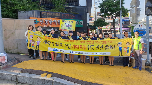 여수시가 24일 오전 신기초등학교에서 여수교육지원청, 여수경찰서, 녹색어머니회 등이 참여한 가운데 학교 주변 위해요인 합동점검에 나섰다.