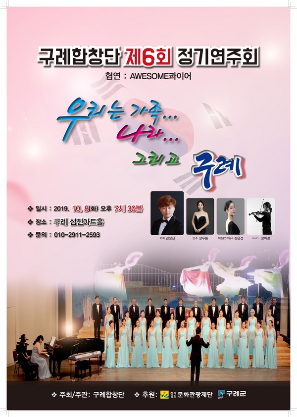 구례합창단이 벌써 6번째 정기연주회를 열게 되어 큰 영광이다.”며 “앞으로도 우리 구