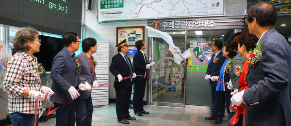 ▲ 구례군 관광안내소 개소구례군(군수 김순호)은 구례구역(求禮口驛)과 공영버스터미널에 구례여행의 길잡이가