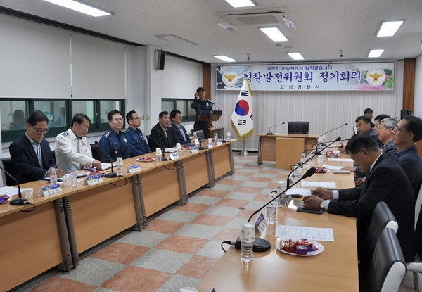 고창경찰서(서장 박정환)는 15일 경찰서 2층 소회의실에서 서장, 안장환 경찰발전위원장을 비롯한 과장, 경찰발전위원과 함께 고창 경찰이 나아갈 방향에 대한 정기회의를 개최했다.