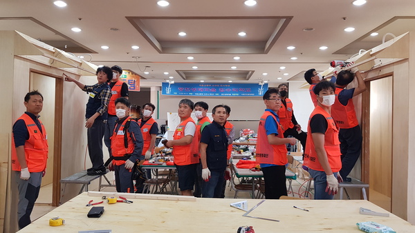 박종희회장은 사)사회안전문화재단(대표 송의섭)의 지원을 받아 정동운부회장, 김종형총무 등 재능기부 하는 단체들과 같이 국토교통부 소규모 도시재생 뉴딜 풍전생태마을 집수리학교에서 지역 주민을 위한 수강생 전원이 생활 집수리 기본과정을 마친 후 심화과정 집짓기를 학습하는 현장에서 현재 교육을 진행하고 있다.