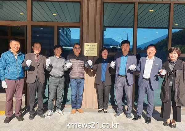 여수시 삼일동 지역사회보장협의체(지사협)가 지난 31일 코리아월드써비스(주)에 행복한 동행 현판을 전달했다.