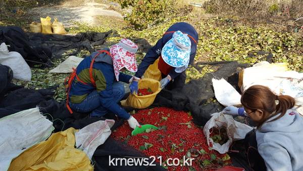로 농가와 연계 후, 자체 일정을 수립해 지난달부터 감, 산수유 수확 등의 일손 돕기를