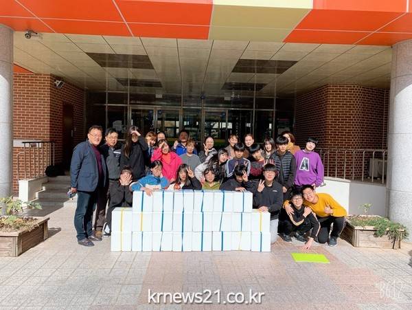 여수시 삼일중학교 재학생 봉사단(처음처럼 삼일처럼 모자봉사단)과 졸업생 봉사단(The 삼일)이 지난 16일 사랑의 김장김치 나눔 행사를 열었다.