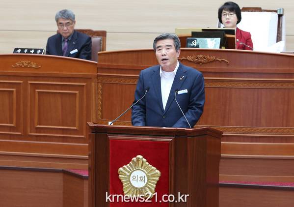 ▲  김동일 시장 시정연설 장면“튼튼한 지역경제 위에 시민들의 삶에 활력을 불어넣고 희망을 줄 수 있도록 공감행정, 적극행정을 통해 새롭게 도약해 나가겠다”