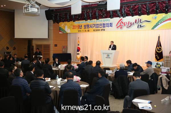 ▲ 기업인협의회 워크숍 및 송년의 밤 행사 장면지난 25일 웨스토피아에서 김동일 시장과 지역 기업 대표, 아주자동차대학 관계자 등 150여 명이 참석한 가운데 보령시기업인협의회 워크숍 및 송년의 밤 행사를 가졌다.