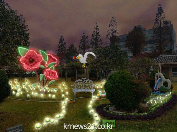 여수시는 시청 정원에 동백꽃(시화)과 갈매기(시조)를 형상화한 경관 조명을 설치해 13일부터 일반에 공개했다.