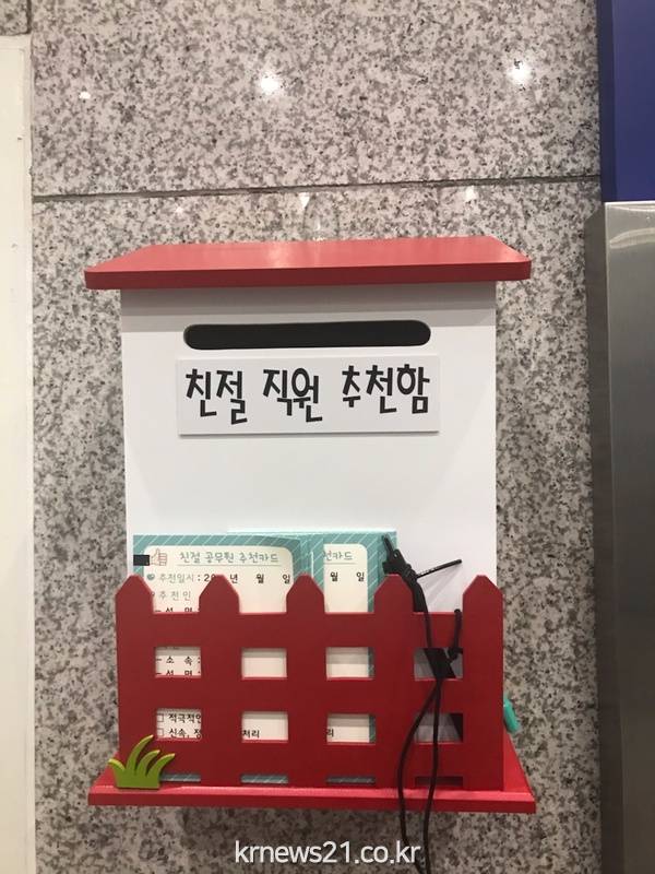 친절 행정 서비스를 제공받은 시민은 민원친절 카드를 통해 공무원에게 감사의 말을 전하고,