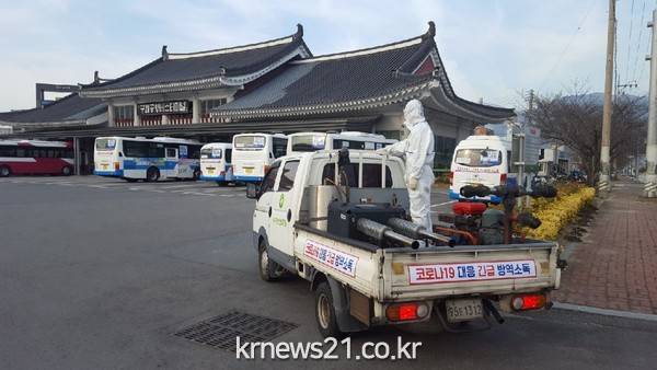 특히 구례군 보건의료원은 자체 방역반을 편성해 관용차량과 휴대용소독기를 이용하여 타 지역 주민과 외국인이 자주 방문하는 5일시장, 버스터미널, 구례구역, 행사장 및 도로 주변을 소독하고 있다.