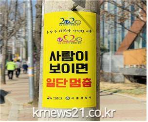 시흥경찰서 에서는 「사람이 보이면 일단 멈춤」 문구를 삽입한 출입차단기 배너 제작하여 관공서.