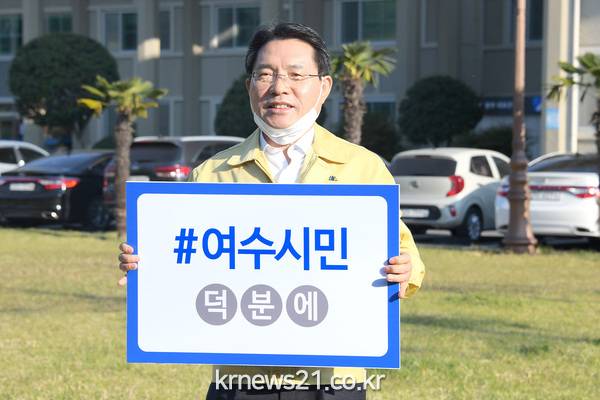 여수시민 덕분에 감사합니다”라고 말하며, 생활방역수칙을 잘 지켜 준 여수시민들에게 존경과 감사의 마음을 표현했다.
