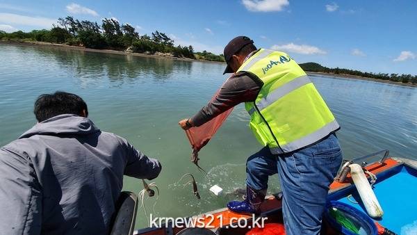 이를 위하여 신안군에서는 신안수산연구소에서 암·수 1마리씩 2~3일 동안 수정작업 후 5월 20일 압해읍 고이도 및 매화도 해역 마을어장에 각각 900마리씩 방류하였다.