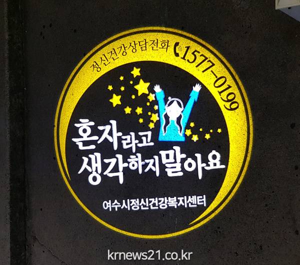 여수시(시장 권오봉)는 생명존중 문화 조성을 위해 생명사랑 이미지 문구가 새겨진 로고젝터(그림자조명)를 설치했다고 3일 밝혔다.