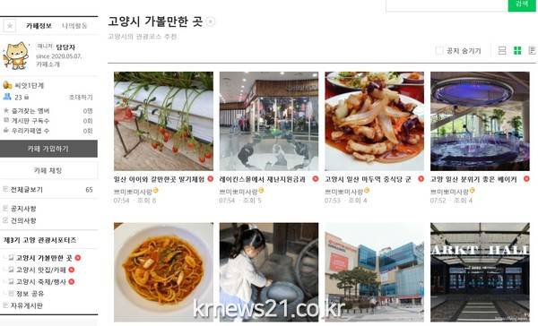 시는 관광서포터즈의 활동을 공유하고, 시의 관광자원을 홍보하기 위해 네이버 카페 ‘고양 관광스토리창고(cafe.naver.com/goyangsupporters)’를 개설했다고 12일 밝혔다.