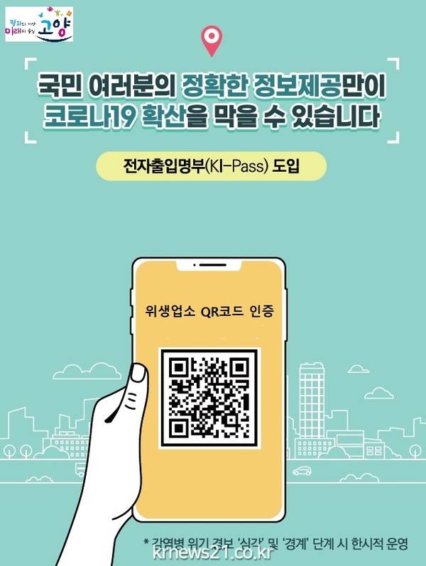 고양시(시장 이재준)는 이용자 밀집도가 높은 대형음식점, 목욕장업소 등의 위생업소에 대해서도 전자출입명부(QR코드) 설치를 확대 운영한다고 30일 밝혔다.