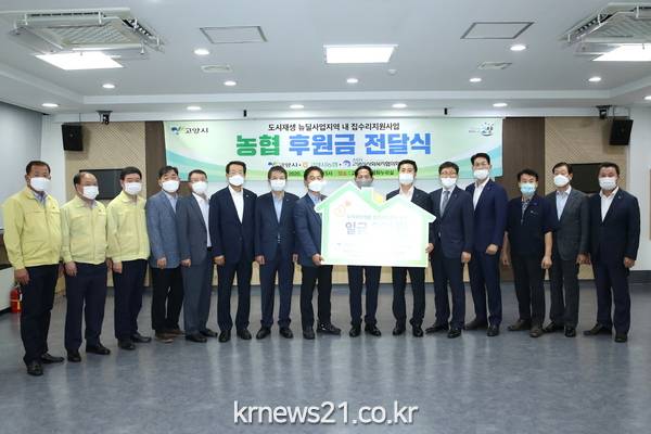 고양시(시장 이재준)는 13일 시청 평화누리실에서 ‘2020년도 고양시 뉴딜사업지역 내 저소득층 집수리지원사업 추진을 위한 농협 후원금 전달식’을 개최했다고 밝혔다.