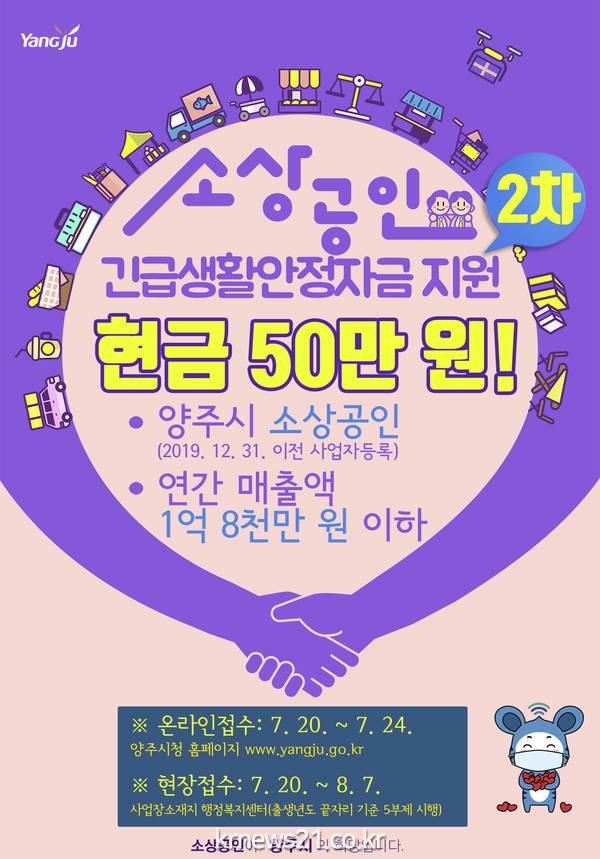 양주시(시장 이성호)는 오는 20일부터 코로나19 사태로 경영악화 등 경제적 위기에 직면한 관내 소상공인을 위해 2차 긴급 생활안정자금을 지원한다.