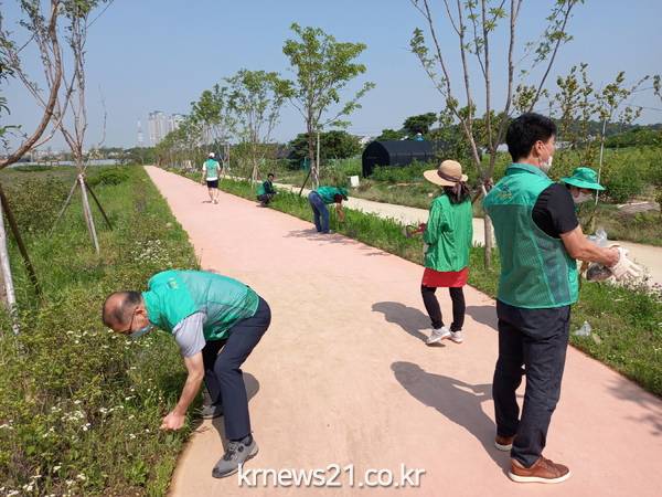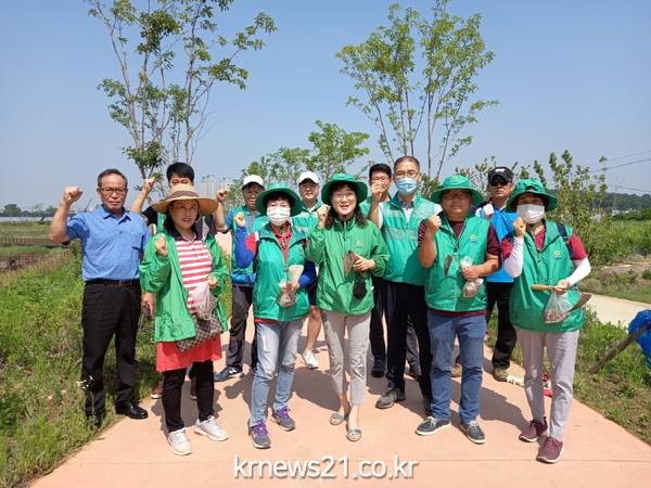고양시 덕양구 능곡동(동장 이한기)은 16일 새마을지도자협의회 및 주민자치위원회 회원 15명 대장천 생태습지공원에서 여름맞이 초화 식재 및 환경정비를 실시했다.