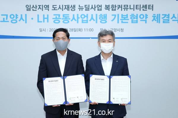 고양시(시장 이재준)가 28일 한국토지주택공사(LH)와 ‘일산지역 도시재생 뉴딜사업 추진을 위한 공동사업시행 기본협약’을 맺고 복합커뮤니티센터 조성을 본격 추진한다.