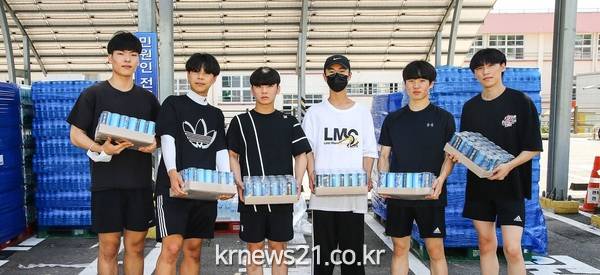 ▲ 8월 18일 구례고등학교 학생들이 구례군청을 찾아 이온음료 기부방역에도 비상이 걸렸다. 더운 날씨와 각종 쓰레기 침출수로 인한 감염병 발생을 차단하고 악취를 제거하기 위해 구례군 보건의료원, 해병대 1사단 등이 방역활동을 추진하고 있다.