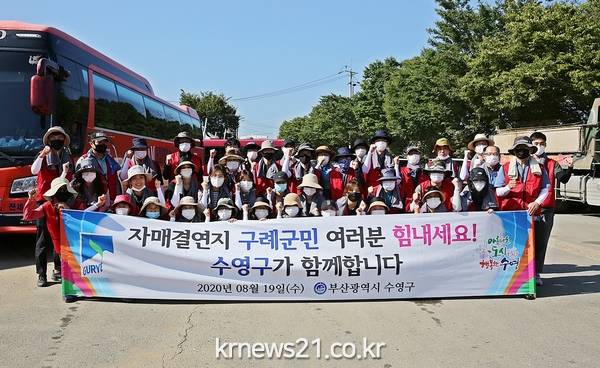 수영구(구청장 강성태)가 자매결연 도시 구례군 수해복구 현장에서 수재민들과 아픔을 함께 나눴다.