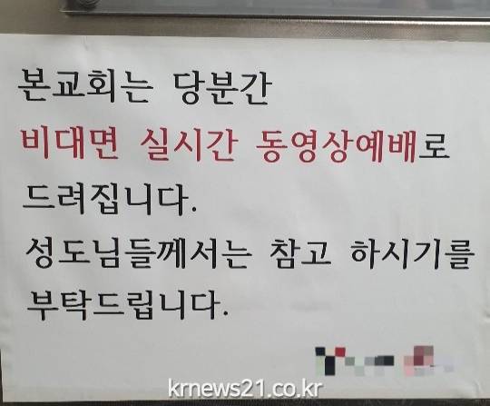 한편 지난 18일 정세균 국무총리의 대국민 담화 및 중대본 방침에 따라 정부는 교회를 대상으로 비대면 예배 (법회, 미사는 제외)만을 허용하는 집합제한 명령을 발동했다.