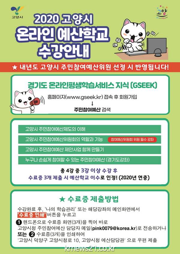 고양시(시장 이재준)가 시행 중인 주민참여예산 ‘온라인 예산학교’가 시민들의 호응을 이끌어내고 있다.