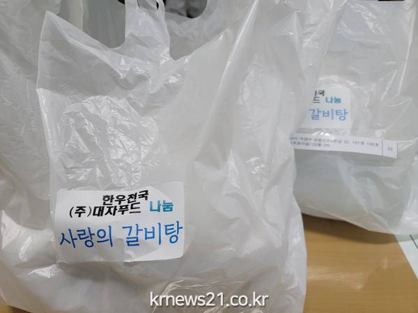 관내 업체 ‘한우천국(대표 강정혜)’는 매년 지역 어르신들을 초대해 사랑의 갈비탕 나눔 봉사를 해왔으나, 올해는 코로나19 확산으로 어르신들이 각자 편안한 시간에 식당에 방문할 수 있도록 갈비탕 쿠폰 60장을 전달했다.