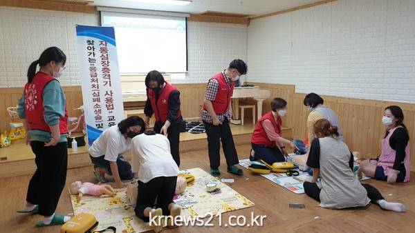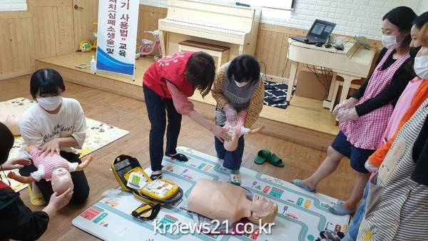 응급처치(심폐소생술) 및 자동심장충격기 사용법 교육은   교사들로 하여금 어린이집 내에서 응급상황이 발생했을 때 즉각적이고도 임시적으로 골든타임 4분 안에 응급처치(심폐소생술)과 자동심장충격기를 사용하여 생명 살리는 일에 동참하게 하고자 추진된 교육이라 더욱더 눈길을 끈다.