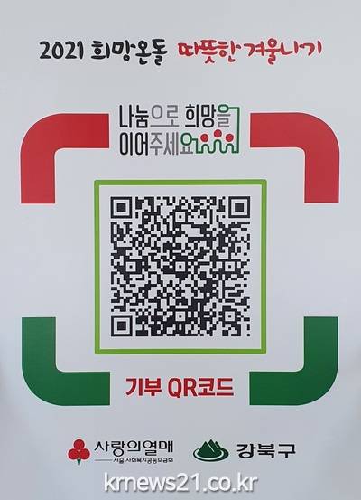 ▲ [사진=홍보포스터]강북구(구청장 박겸수)가 지난 30일부터 따뜻한 겨울나기 사업의 일환으로 QR코드를 활용한 기부릴레이 ‘힘내요! 강북’ 캠페인을 실시하고 있다.