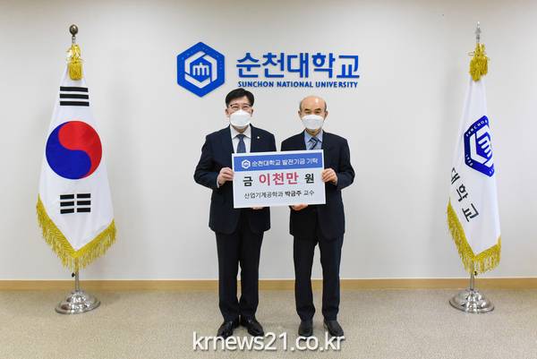 순천대학교(총장 고영진)는 산업기계공학과 박금주 명예교수가 학교발전을 위해 대학발전기금 이천만원을 쾌척했다고 밝혔다.