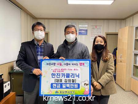 ▲  [사진제공 = 통영시]통영시 광도면 소재 한진카클리닉 김외철 대표는 11. 10.(수) 용남면사무소를 방문하여 관내 질병으로 어렵고 힘든 생활을 이어가고 있는 모 기초수급 가구에 지원해달라며 현금 일백만원을 쾌척하여 올해 1월부터 반찬 지원, 정기 및 일시 현금 기탁 등 다양한 방법으로 추진 중인“용남 나눔 人뱅크”사업에 행복한 나눔 물결을 이어갔다.