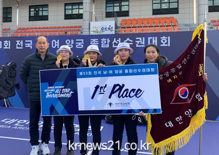 군에 따르면 지난 9일부터 11일까지 경북 예천의 진호국제양궁장에서 열린 제53회 전국남여종합선수권대회에서 홍성군청 양궁팀이 단체전에서 금메달을, 홍성여고 한솔 선수가 개인전에서 은메달을 각각 수확했다.