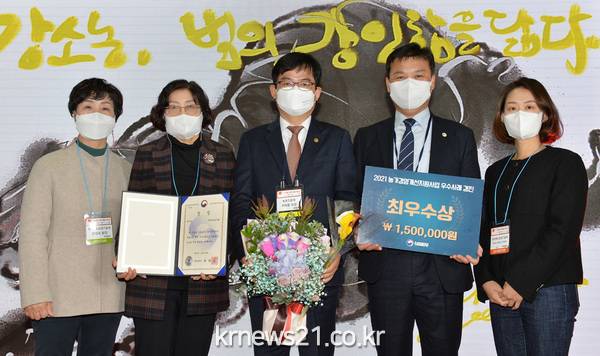 ▲  사진=충북도충북농업기술원(원장 서형호)은 24일 서울 코엑스에서 열린 ‘2021년 강소농대전’에서 강소농 육성 부문 전국 ‘최우수 기관상’을 수상하는 영예를 안았다.