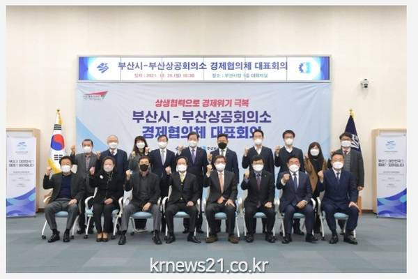 ▲ [사진=부산시청]부산시(시장 박형준)는 오늘(20일) 지역현안과 경제활성화 대책을 논의하기 위해 부산상공회의소와 경제협의체 대표회의를 개최했다고 밝혔다.